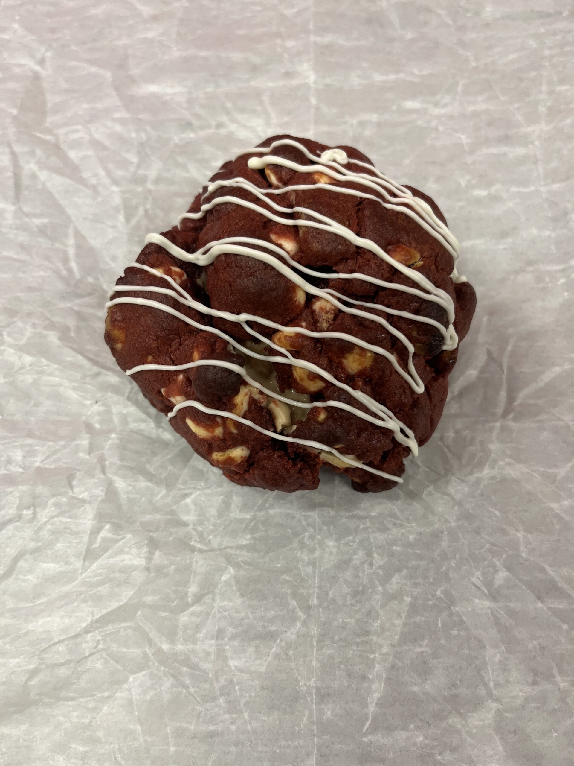A lovers’ favorite: Red Velvet Cookie with white chocolate chunks and a creamy Nutella filling 🤍❤️